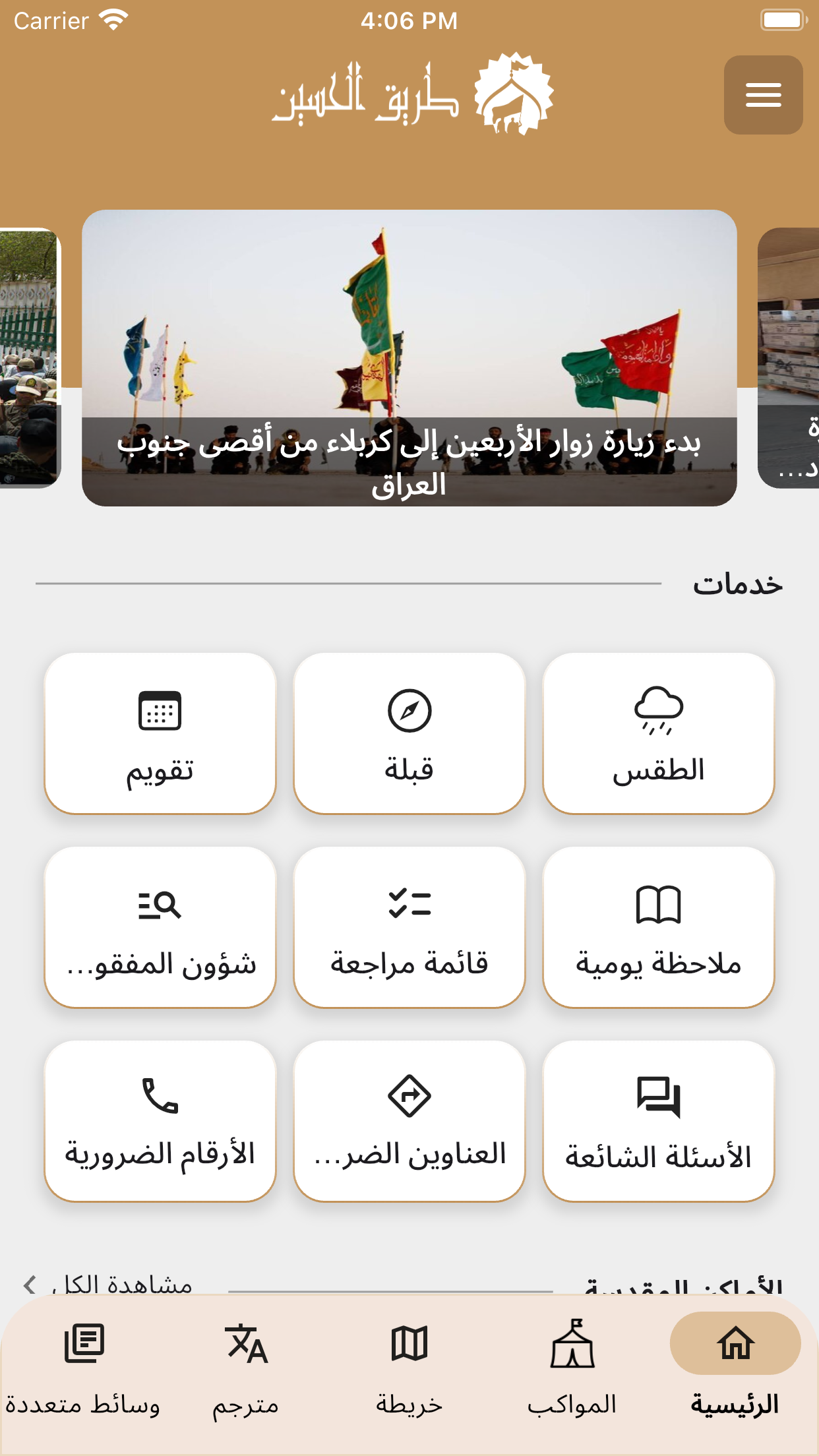 این بخش از نرمافزار به شما امکان میدهد تا بهروزترین اخبار مربوط به مراسم اربعین را دنبال کنید. همچنین، راهنماییهای لازم برای زائران در طول سفر ارائه میشود تا سفری امن و مطمئن داشته باشند.
