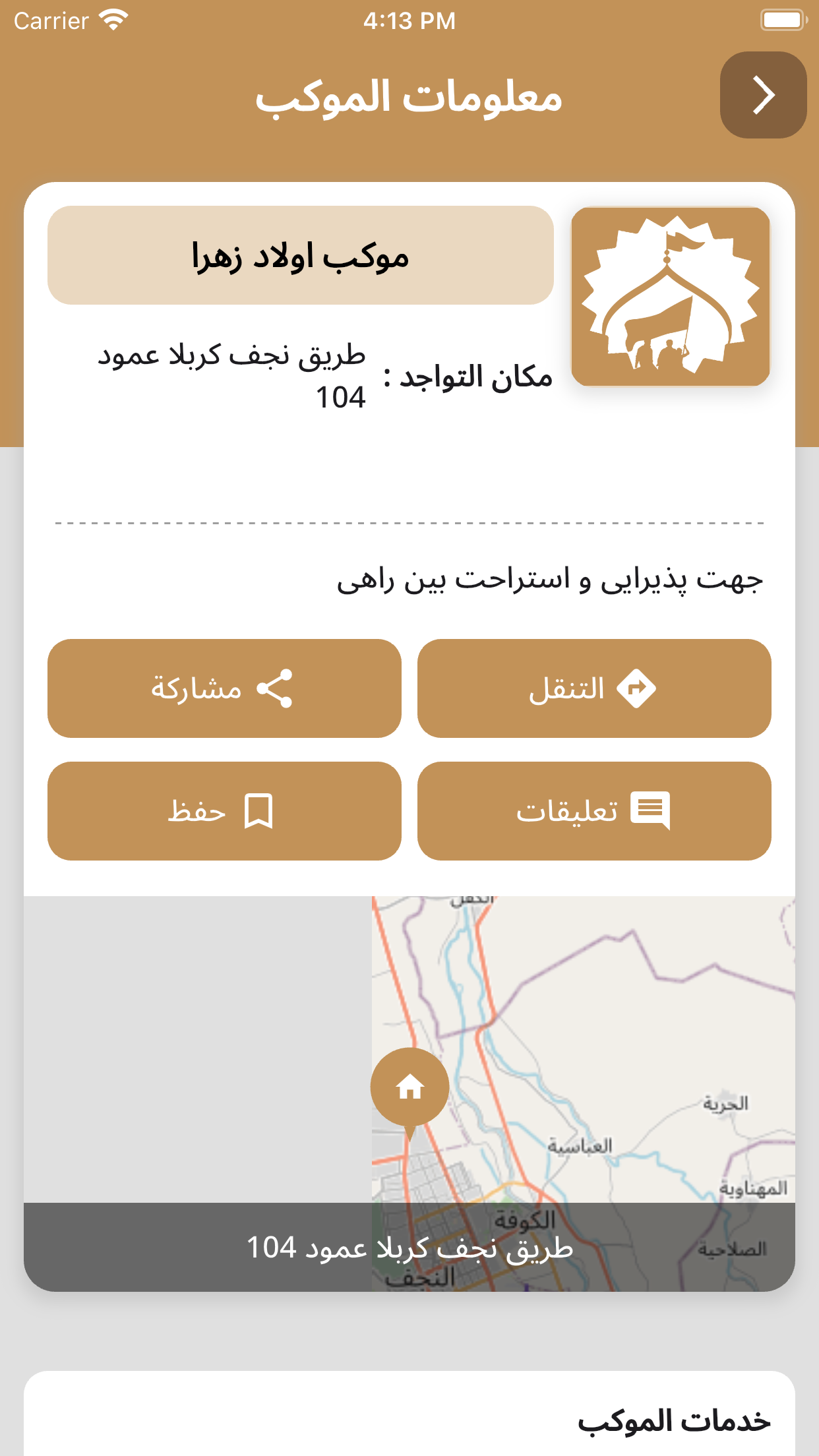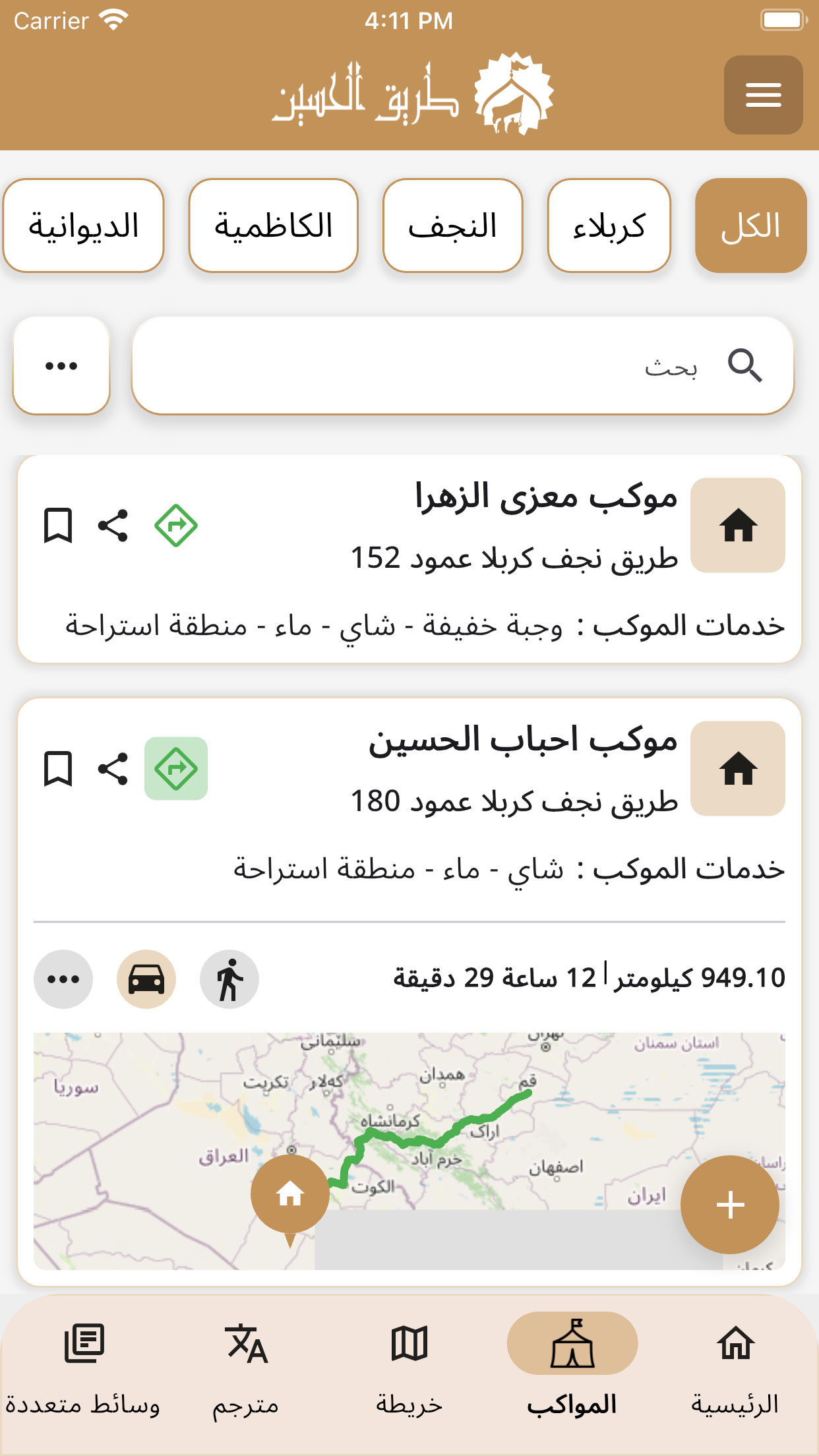 در این قسمت میتوانید اطلاعات جامع و بهروزی از مواکب موجود در مسیر پیادهروی به سمت کربلا دریافت کنید. این اطلاعات شامل موقعیت مکانی، خدمات ارائه شده، و ساعات فعالیت مواکب میباشد.