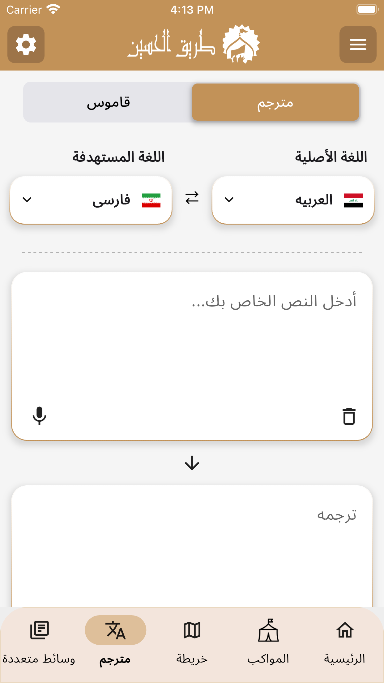 این بخش به کاربران امکان میدهد تا به راحتی متون و کلمات را به زبانهای مختلف ترجمه کنند. همچنین، دسترسی به یک فرهنگ لغت جامع فراهم شده است تا زائران بتوانند به راحتی با مردم محلی ارتباط برقرار کنند.